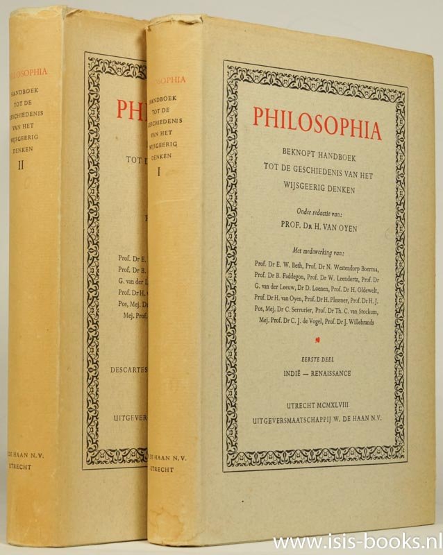 | Meer info: | Deel 1: Indië-Renaissance, Deel 2: Descartes- Hedendaagsche wijsbegeerte. Met bijdragen van o.a.: B. Faddegon, G. van der Leeuw, C.J. de Vogel, E.W. Beth, H. Plessner, H.J. Pos |