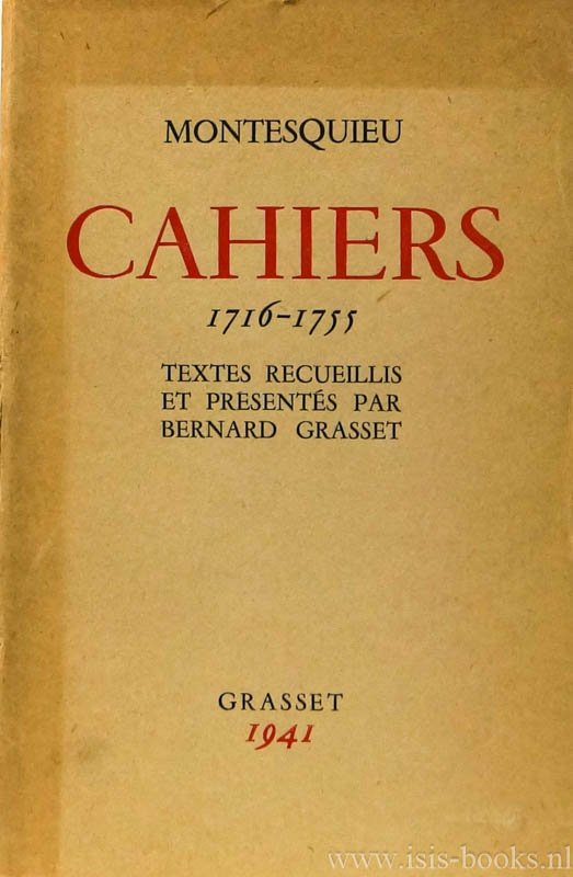 MONTESQUIEU, C.L. DE SECONDAT - Cahiers (1716-1755). Textes rec