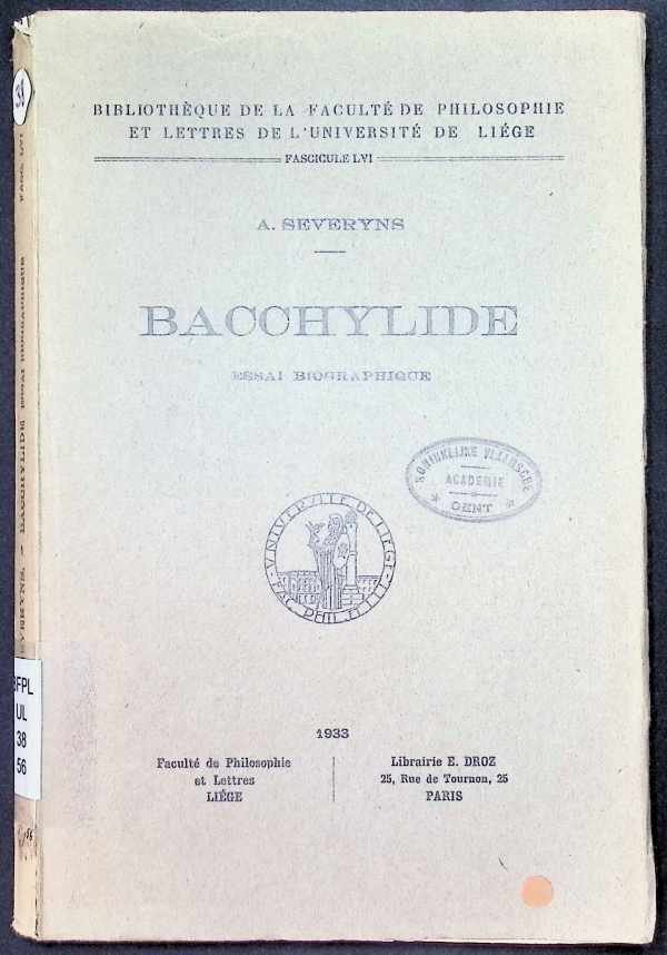 A. Severyns - Bacchylide essai biographique