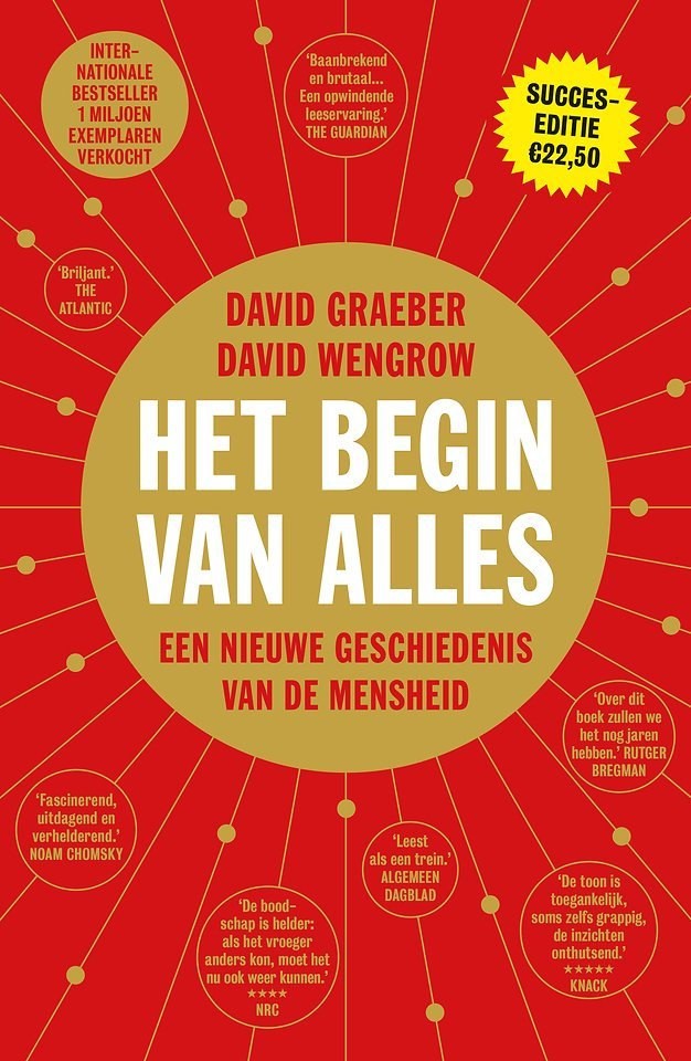 Het begin van alles is een revolutionaire herziening van de geschiedenis van de mensheid. Het neemt je mee op een duizelingwekkende en meeslepende rit die 30.000 jaar en de hele planeet omspant. Antropoloog David Graeber en archeoloog David Wengrow tonen aan dat het gangbare verhaal over het ontstaan van de mensheid - denk aan de boeken van Steven Pinker, Jared Diamond en Yuval Noah Harari - niet klopt. Ze beschrijven prehistorische megasteden, onontdekte matriarchaten, landbouwweigeraars en andere verrassende samenlevingen die ons huidige beeld van de geschiedenis onherroepelijk doen kantelen. Deze internationale bestseller rekent definitief af met oude beperkende mythen die ons wereldbeeld tekortdoen. De geschiedenis laat zien dat ongelijkheid en discriminatie niet ingebakken hoeven te zitten in een complexe samenleving. Als we dit idee loslaten, kunnen we met meer inventiviteit en daadkracht onze huidige samenleving inrichten. Het is hoog tijd voor een nieuwe blik op de mensheid. 'O