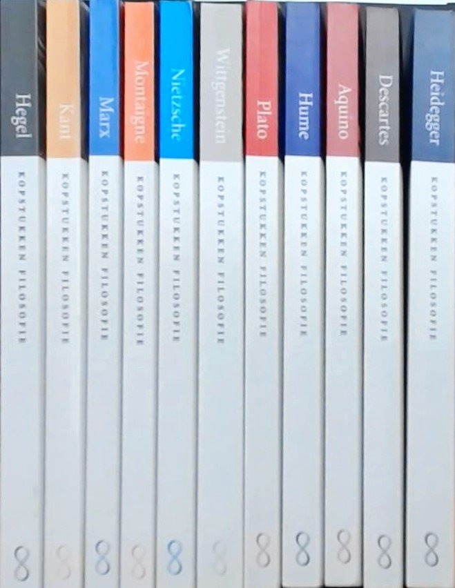 | Meer info: | Bindwijze: Paperback. Omschrijving: Uit de jaren 1999/2000. 11 delen: Hegel, Kant, Marx, Montaigne, Nietzsche, Wittgenstein, Plato, Hume, Aquino, Decartes, Heidegger. Meeste boekjes in als nieuw staat. 2 met leesvouwen. Lichte sporen omslagen. Lichte gebruik-/opslagsporen. |