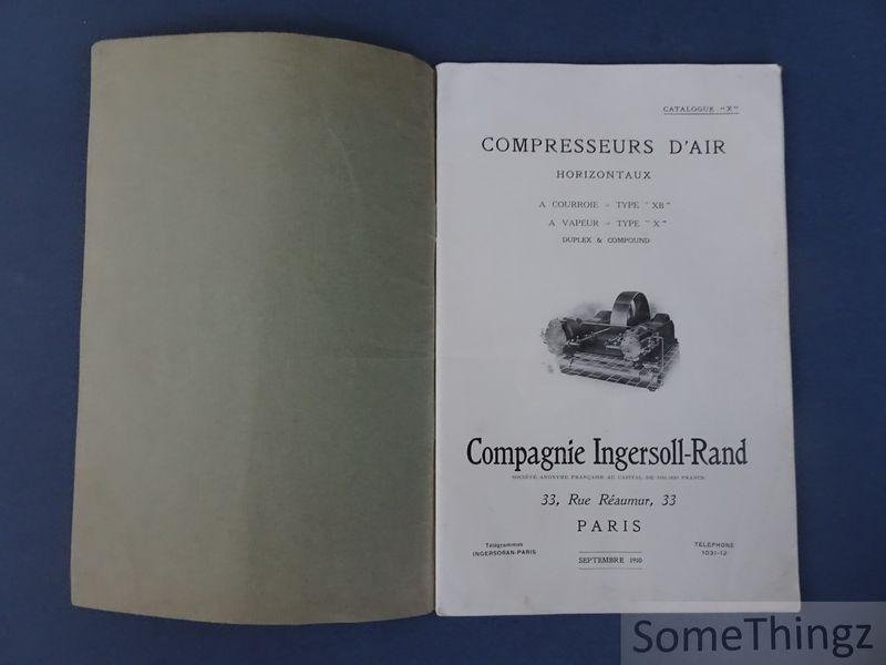 | Titel: | Compagnie Ingersoll-Rand. Catalogue X: compresseurs d'air horizontaux a courroie type XB, a vapeur rype X, duplex & compound. |