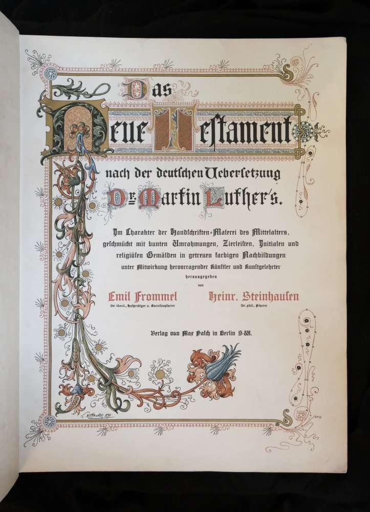 | Titel: | Das Neue Testament nach der deutschen Uebersetzung Dr. Martin Luther's. Im Charakter der Handschriften-Malerei des Mittelalters, geschmückt mit bunten Umrahmungen, Zierleisten, Initialen und religiösen Gemälden in getreuen farbigen Nachbildun... |