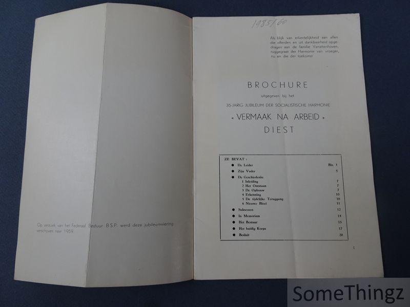 | Titel: | Brochure uitgegeven bij het 35-jarig jubileum des socialistische harmonie 'Vermaak na Arbeid' Diest. 1923 - 1958. |