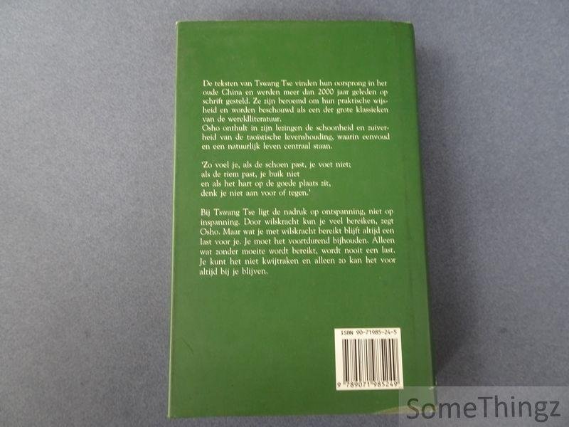 Osho onthult in zijn lezingen de schoonheid en zuiverheid van de taoïstische levenshouding, waarin eenvoud en een natuurlijk leven centraal staan. Zo voel je, als de schoen past, je voet niet; en als de riem past, je buik niet en als het hart op de goede plaats zit denk je niet aan voor of tegen.' Bij Tswang Tse ligt de nadruk op ontspanning, niet op inspanning. Door wilskracht kun je veel bereiken, zegt Osho. Maar wat je met wilskracht bereikt blijft altijd een last voor je. je moet het voortdurend bijhouden. Alleen wat zonder moeite wordt bereikt, wordt nooit, last. je kunt het niet kwijtraken en alleen zo kan het altijd bij je blijven. Oude teksten uit China van Tswang Tse, een leerling van Lao Tse, zijn door de auteur als uitgangspunt genomen voor een aantal lezingen. Deze lezingen zijn bewerkt tot dit boek. Ieder hoofdstuk begint met een van deze teksten. De kern hiervan is een Taoïstische levenshouding, waar eenvoud en een natuurlijk leven centraal staan. Thema's van de hoofdstukken zijn o.a. ontspanning, seksualiteit, lijden, zelfacceptatie, de rol van het ego, identiteit, liefde en religie. Geschreven in de bekende (Bhagwan) Osho-stijl met veel letterlijke tekstherhalingen, afgewisseld met annekdotes, parabels, soetra's en Soefi-verhalen.