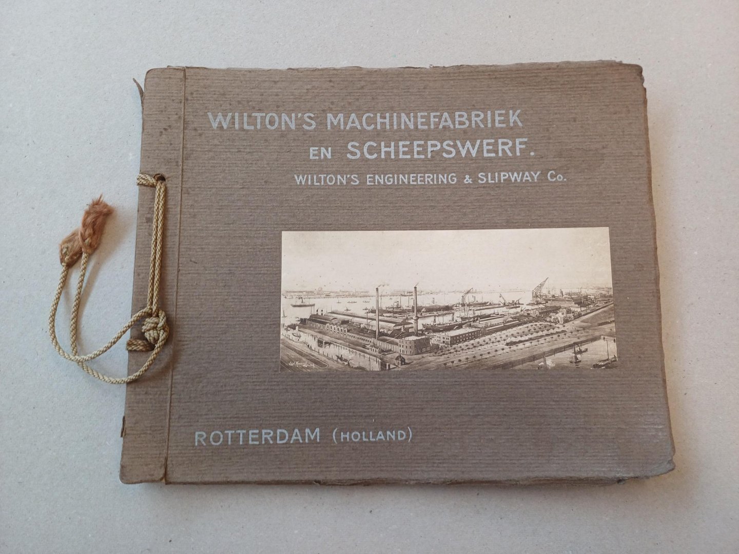| Bijzonderheden: | 1915, Brown paper wrappers with drawing, stamped title and cord ties. Beautiful catalogue of the Wilton's Machinefabriek and Scheepswerf. 60 images (some edited) of ships , cranes and factories. With undertitles in English, German, French and Span... |