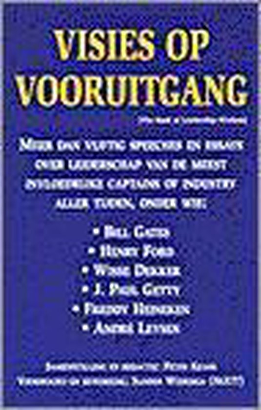 J. Paul Getty, Akio Morita, David Packard, Anton Philips, Andrew Carnegie, Henry Ford en Bill Gates. Het zijn enkele van de belangrijkste en invloedrijkste captains of industry aller tijden, die hun ondernemingen ongekende successen hebben gebracht. Maar wat is het precies dat hen tot succesvolle leiders maakte? Is het hun vermogen om verder vooruit te zien dan anderen? Is het de wijze waarop zij tegenspoed het hoofd bieden? Valt het succes van een leider samen met de mate waarin hij anderen weet te inspireren? Of is het de zeldzame combinatie van zakelijk inzicht en durf? In Visies op vooruitgang geven legendarische topmannen uit het bedrijfsleven in hun eigen woorden hun visie op wat een echte leider is. Staalmagnaat Andrew Carnegie hecht veel waarde aan het motiveren van werknemers en is van mening dat je 'het hart van de originele, buitengewoon bekwame man moet veroveren en vasthouden voor zijn hersenen optimaal kunnen werken.' Chester I. Barnard, een van de eerste captains of industry die stilstonden bij de kwaliteiten van een topmanager, ziet een leider als iemand die van nature respect afdwingt en wilskracht weet uit te stralen. Roberto Goizueta van The Coca-Cola Company legt uit dat hij als leider alleen maar handelt in het belang van de aandeelhouders en bij Henry Ford gaat het om de noodzaak van verandering binnen een bedrijf. Bill Gates spreekt over wat hij op lange termijn wil bereiken en David Packard vertelt over het belang dat hij stelt in 'het scheppen van een omgeving die individuele motivatie, initiatief en creativiteit aanmoedigt en veel vrijheid van handelen geeft bij het nastreven van gemeenschappelijke doelen.' De ruim vijftig toespraken en essays in deze bijzondere verzameling zijn ingedeeld rond zeven thema's: de noodzakelijke kwaliteiten, handelen bij tegenslag, visies op vooruitgang, bedrijfscultuur, gewoonten en eigenaardigheden, motivators en mentoren, en leidende revolutie. Samen geven deze visies van topmanagers van internationale grootmachten als McDonald's, Sony, Intel, IBM, Philips, Hewlett Packard, ITT, Heineken, Motorola en AT&T een unieke kijk in de keuken van het topmanagement van het internationale bedrijfsleven. Peter Krass is schrijver en redacteur. Hij heeft meerdere businessboeken op zijn naam staan en schrijft regelmatig voor Investor's Business Daily. Sander Wieringa, hoofdredacteur van het zakenblad NeXT!, heeft voor de Nederlandse editie de selectie verzorgd en het voorwoord geschreven. Leiders zijn individuen die gewone mensen in tijden van tegenspoed ertoe brengen bijzondere dingen te doen. - Andrew S. Grove, Intel Wie er ontslagen wordt en waarom en wanneer en zelfs hoe, raakt de kern van het karakter van een bedrijf, het management en de leiding. - Harold S. Geneen, ITT Leiderschap is onder meer het vermogen de werkelijkheid overzichtelijk te maken. - Wessel Ganzevoort, KPMG Een onderneming als de onze moet een atmosfeer uitstralen waarin mensen het gevoel hebben dat het niet erg is om fouten te maken. Dit betekent dat we een organisatie moeten vormen waar fouten niet alleen getolereerd worden, maar waar angst voor kritiek omdat men met een dwaas idee komt, ook is afgeschaft. - Michael Eisner, Walt Disney Company Uit onze ervaringen blijkt dat je het maatschappelijke engagement niet hoeft te offeren op het altaar van winstmaximalisatie. - Ben Cohen en Jerry Greenfield, Ben & Jerry's Veel ups en downs in de zakenwereld ontstaan enkel en alleen doordat de klant wordt vergeten - doordat de man die betaalt wordt vergeten... - Henry Ford |