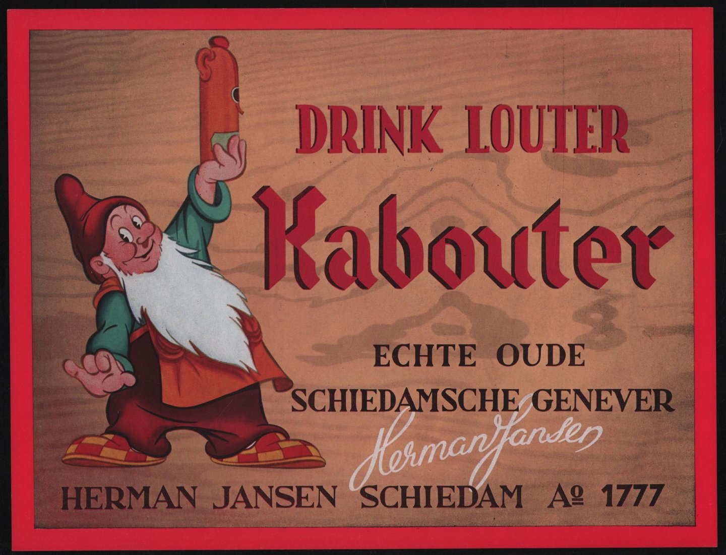 | Titel: | (poster) Drink Louter Kabouter - Echte oude Schiedamsche Genever |