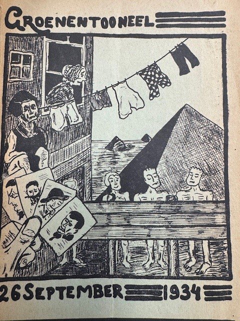 Groenentooneel 26 september 1934 Uitvoering door de novitii van 1934 te geven op woensdag 26 september in het gebouw voor kunsten en wetenschappen.1934. Utrecht, P. den Boer, 1934, 45pp. original illustrated binding. scarce programme for the performance of the new members of Utrechtsch Studentencorps USC/U.S.C.