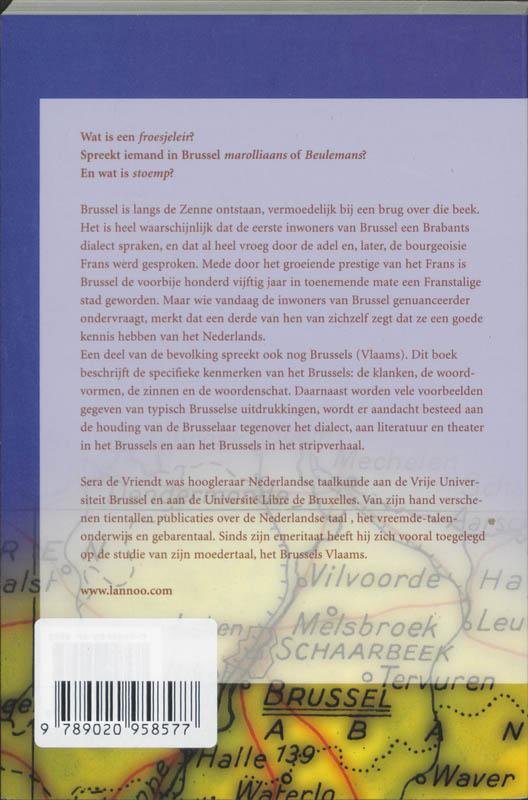 Het Vlaamse luik van de populaire Nederlandse reeks 'Taal in stad en land'. Herontdek de rijke woordenschat en geschiedenis van het dialect waarmee je opgroeide Vlot geschreven en aantrekkelijk vormgegeven Met een woordenlijst waarin de meest typische dialectwoorden zijn opgenomen Zeer succesvol in Nederland Toegankelijk geschreven door ervaren dialectologen Wat is een froesjeleir? Spreekt iemand in Brussel marolliaans of Beulemans? En wat is stoemp? Brussel is langs de Zenne ontstaan, vermoedelijk bij een brug over die beek. Het is heel waarschijnlijk dat de eerste inwoners van Brussel een Brabants dialect spraken, en dat al heel vroeg door de adel en, later, de bourgeoisie Frans werd gesproken. Mede door het groeiende prestige van het Frans is Brussel de voorbije honderd vijftig jaar in toenemende mate een Franstalige stad geworden. Maar wie vandaag de inwoners van Brussel genuanceerder ondervraagt, merkt dat een derde van hen van zichzelf zegt dat ze een goede kennis hebben van het Nederlands. Een deel van de bevolking spreekt ook nog Brussels (Vlaams). Dit boek beschrijft de specifieke kenmerken van het Brussels: de klanken, de woordvormen, de zinnen en de woordenschat. Daarnaast worden vele voorbeelden gegeven van typisch Brusselse uitdrukkingen, wordt er aandacht besteed aan de houding van de Brusselaar tegenover het dialect, aan literatuur en theater in het Brussels en aan het Brussels in het stripverhaal.