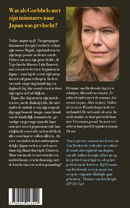 Wat als Goebbels met zijn minnares naar Japan was gevlucht?Tokio, najaar 1938. Nazipropagandaminister Joseph Goebbels verlaat zijn vrouw Magda, zijn kinderen én zijn hoge positie in dienst van de Führer, om met zijn grote liefde, de Tsjechische filmster Lída Baarová, aan een nieuw leven te beginnen in Japan – waar hij de eerste tijd stropdassen wil gaan verkopen. In deze vreemde omgeving houdt hij een dagboek bij, dat vooral een reis door zijn eigen ziel zal blijken.Bijna elke dag nemen zijn inzichten toe, mede dankzij Lída, die niet onder de indruk is van zijn zorgvuldig opgebouwde imago, maar houdt van de kinderlijk romantische, gevoelige en geestige man die haar ooit met zoveel gepassioneerde hartelijkheid veroverde en bereid bleek alles voor haar te willen offeren. Als twee vreemden in het ondoorgrondelijke Japan voelen ze zich meer thuis bij elkaar dan bij de Duitsers. Maar wat nu als er onverwacht een aanbod komt, een herkansing, met de kracht van een wederopstanding?