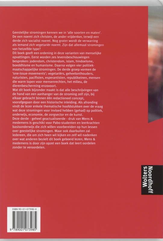 Mens & medemens biedt je een heldere ordening in deze varianten van menselijke opvattingen. Met de PaboWijzer-card bij het boek kun je heel gericht voor een tentamen leren dankzij de handige toetsen met feedback op website van PaboWijzer. In het eerste deel van Mens & medemens worden zes levensbeschouwingen besproken: het jodendom, het christendom, de islam, het hindoeïsme, het boeddhisme en het humanisme. Daarna volgen vier politiek-maatschappelijke stromingen: het liberalisme, het socialisme, het confessionalisme en de groene politiek. Het boek eindigt met de derde groep, de 'one-issue-movements': vegetariërs, geheelonthouders, naturisten, esperantisten, republikeinen, enzovoort. Alle beschrijvingen zijn van de hand van een aanhanger van de stroming zelf. Op de website van PaboWijzer krijg je met de PaboWijzer-card bij het boek gratis toegang tot: - Toetsvragen met feedback en studieadvies - Het e-book (digitale hoofdstukken) - Samenvattingen per hoofdstuk |