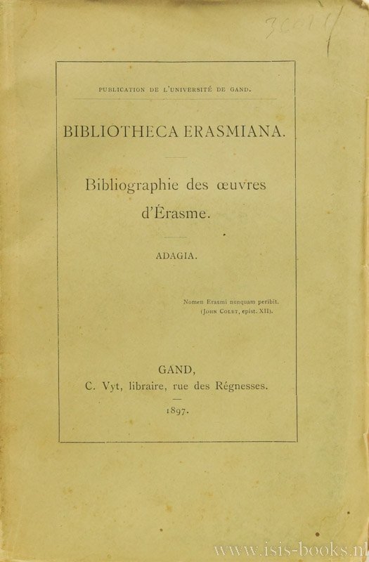 ERASMUS, DESIDERIUS, HAEGHEN, F. VANDER - Bibliotheca Erasmiana