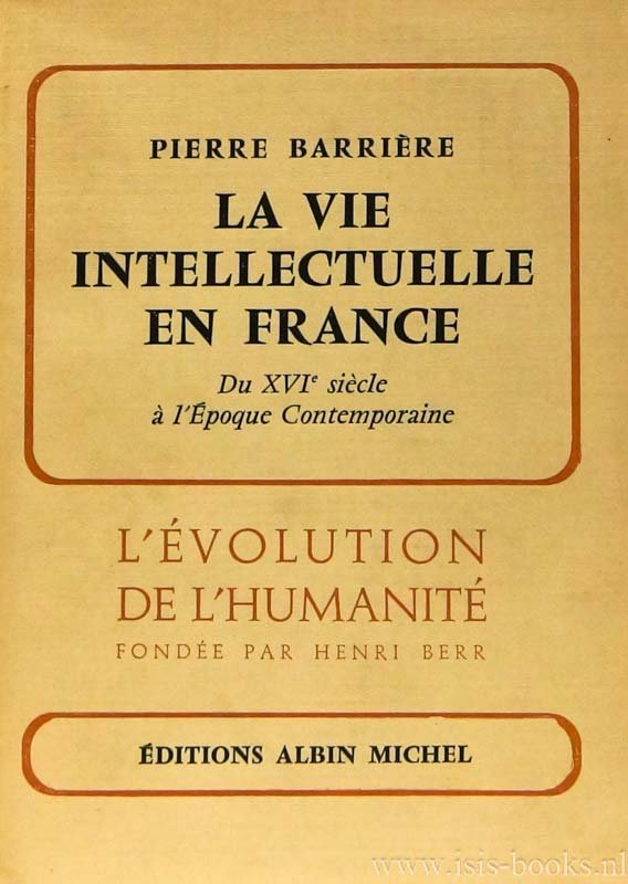 BARRIÈRE, P. - La vie intellectuelle en France du XVIe siècle