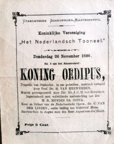 ![Utrecht: - [Programma] Koninklijke Vereeniging "Het Nederlandsch Tooneel". No. 4 van het abonnement: Koning Oedipus,,, muziek gecomp. door J.C.M. van Riemsdijk Utrecht: - [Programma] Koninklijke Vereeniging "Het Nederlandsch Tooneel". No. 4 van het abonnement: Koning Oedipus,,, muziek gecomp. door J.C.M. van Riemsdijk](https://images.boekwinkeltjes.nl/medium/fLxoJnVrvyZZcG5y9FFr.jpg)