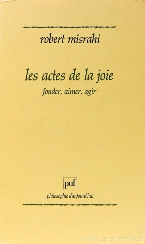 MISRAHI, R. - Les actes de la joie fonder, aimer, agir. Philoso