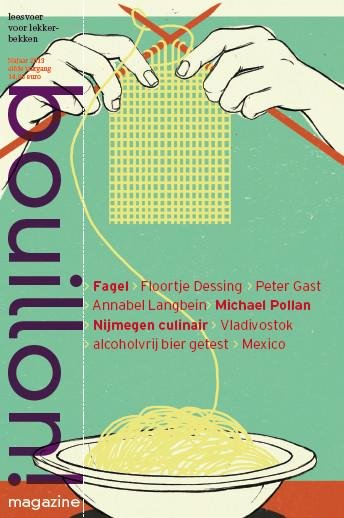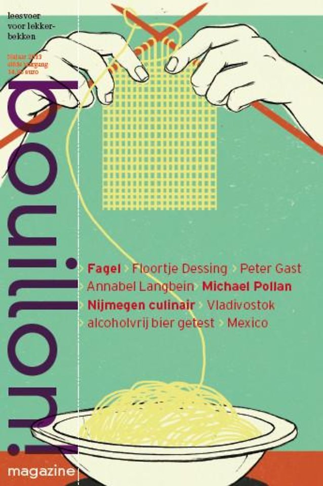 Cover: Dit is het 41e boekje in de serie, en voor iedere uitgave wordt wereldwijd gezocht naar dè coverfoto. Deze keer is het een illustratie van Anna Parini. Het was de onmiddellijke keuze van de hoofdredacteur. Haar website is absoluut een bezoek waard: www.annaparini.com Inhoud: Buckler kon 25 jaar geleden uit de markt gepest worden. Nu is alcoholvrij bier volwassen en een volwassen keuze. Bouillon proefde er twintig. Paul Fagel de laatste in de Fageldynastie. Zijn stem, zijn glimlach en zijn ogen: aardig zijn kost niet zoveel moeite. Anders kijken naar de crisis. Peter Gast van 't Schulten Hues kijkt nuchter naar de nieuwe economie. Michael Pollan is op zijn hoede. Er is veel belangstelling voor het echte eten, maar de grootindustrie claimt haar aandeel met nonchalant gemak. Van beaujolais lekkere ijsjes maken, ja maar dat gaat echt te ver. Of toch niet? Het tragische lot van een fruitverkoper: Tunesië na de Jasmijnrevolutie is hardop fluisteren. En verder: Babette Cremer aan de ra