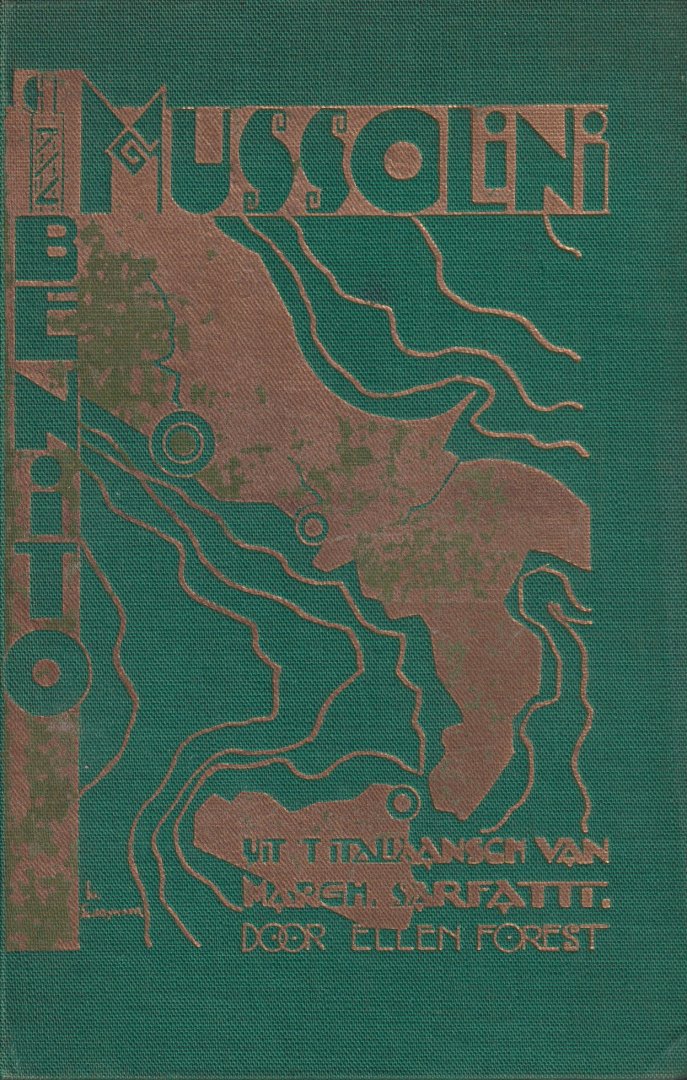 | Meer info: | Jugenstilband met gouden belettering & vignet (rug en voorplat), met tekening van Mussolini van J.Th. Toorop (1858-1928) als frontispies, wordt verzonden als brievenbuspakket |
