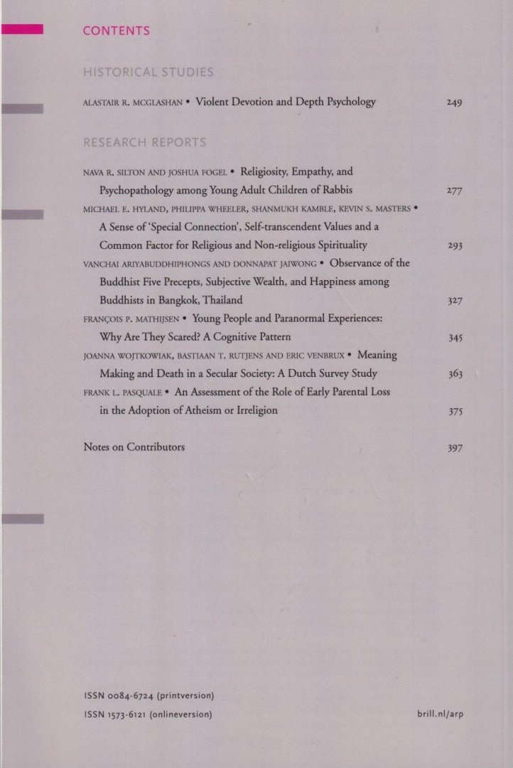 Archive for the psychology of Religion | Archiv für Religionspsycholog