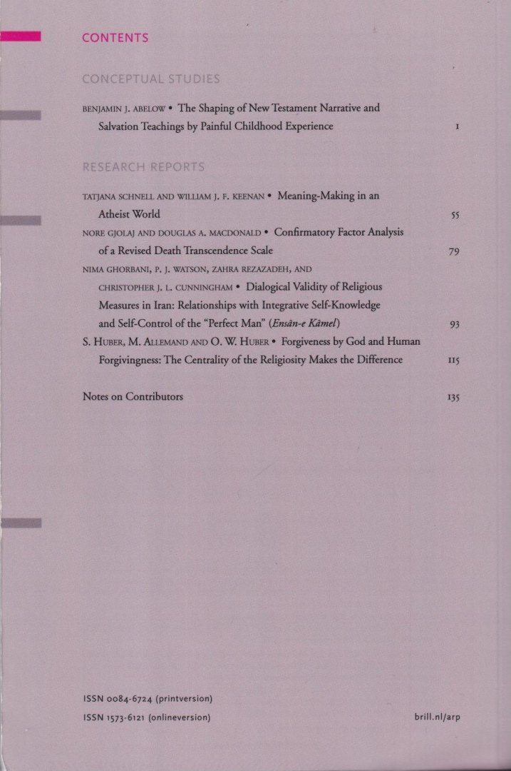 Archive for the psychology of Religion | Archiv für Religionspsycholog