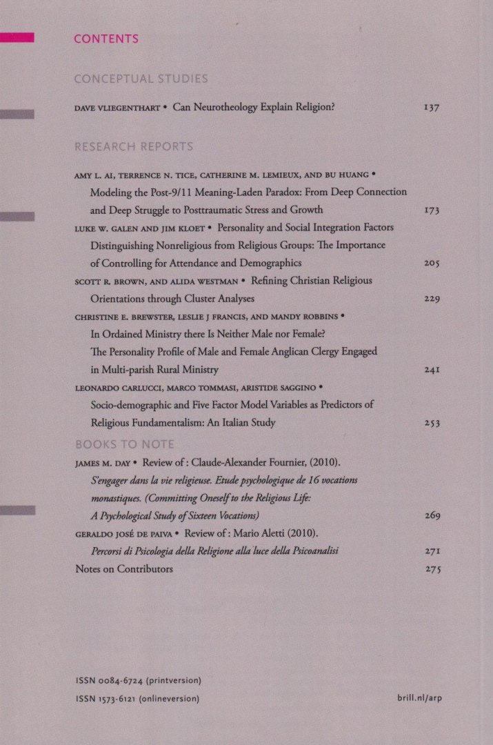 | Titel: | Archive for the psychology of Religion | Archiv für Religionspsychologie, volume 33, no. 2, 2011 |