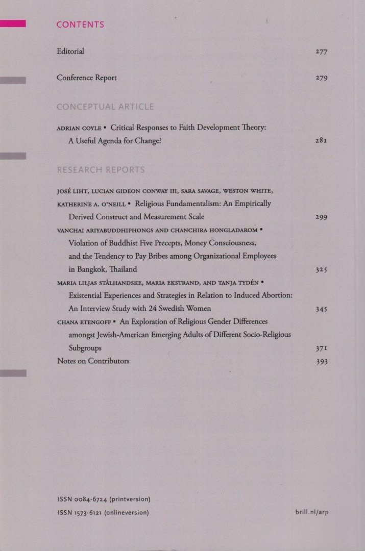 | Titel: | Archive for the psychology of Religion | Archiv für Religionspsychologie, volume 33, no. 3, 2011 |