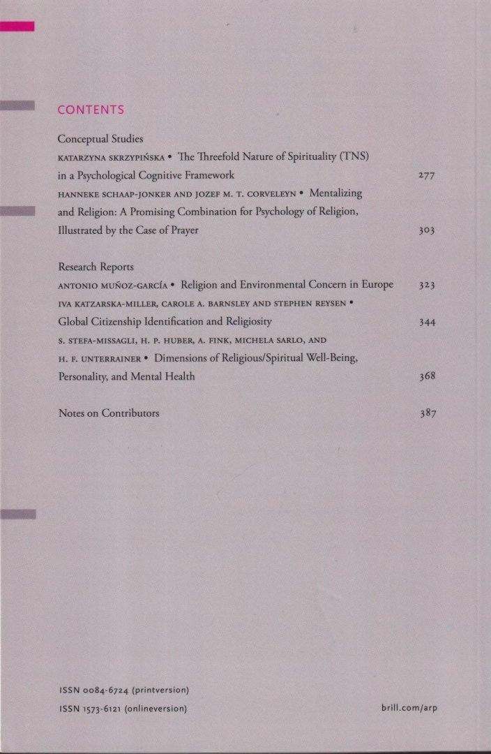 | Titel: | Archive for the psychology of Religion | Archiv für Religionspsychologie, volume 36, no. 3, 2014 |