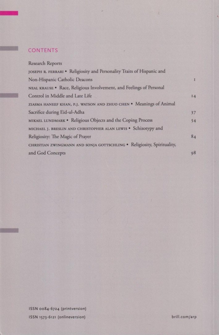 Archive for the psychology of Religion | Archiv für Religionspsycholog