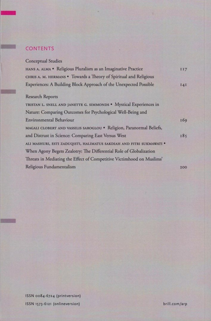 Archive for the psychology of Religion | Archiv für Religionspsycholog