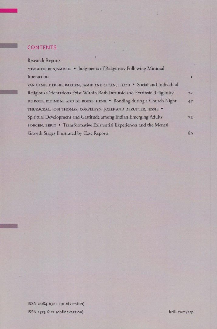 Archive for the psychology of Religion | Archiv für Religionspsycholog