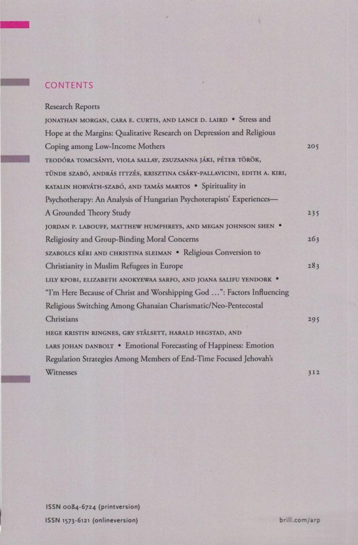 | Titel: | Archive for the psychology of Religion | Archiv für Religionspsychologie, volume 39, no. 3, 2017 |