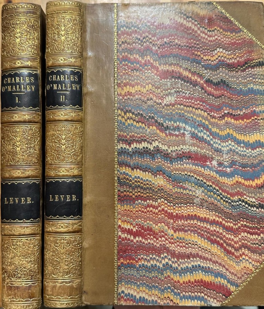 | Bijzonderheden: | 2 vols., 8vo, half calf, gilt dec., light brown, marbled boards, frontispice, extra titlepage, 40 full page steel engravings by Phiz (ps. Hablot Knight Browne). Edited by Harry Lorrequer. First edition. VG. The author's second and most popular no... |