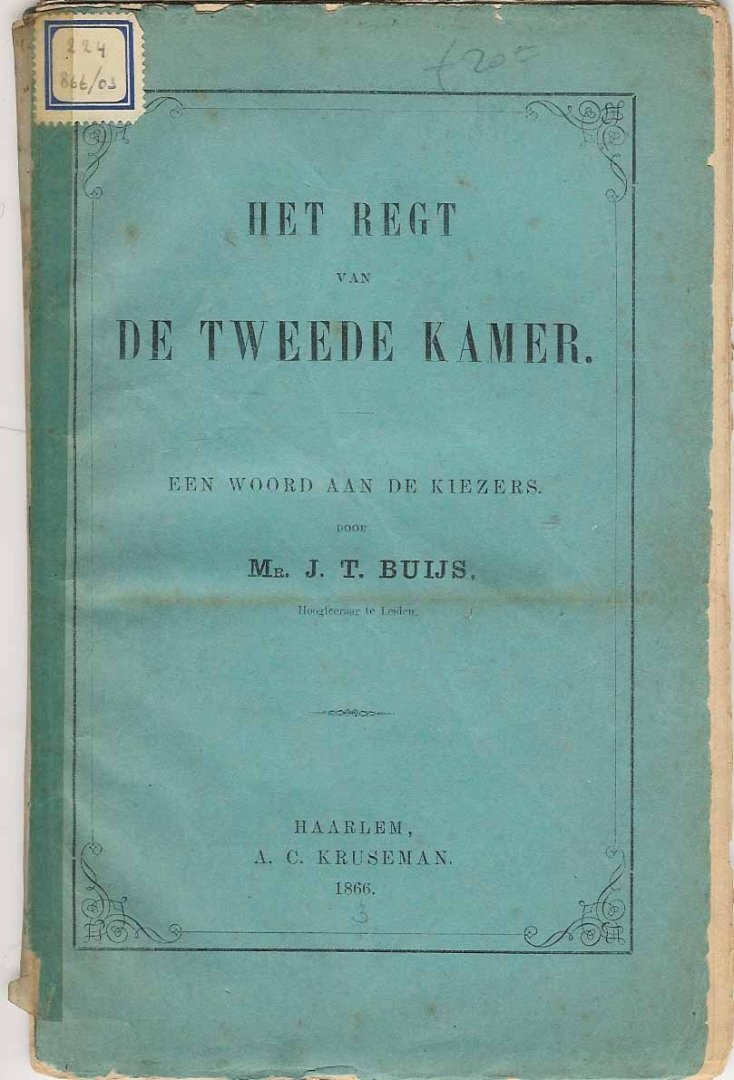 Buijs, Mr. J.T - Het Regt van de Tweede Kamer. Een woord aan de kiezers