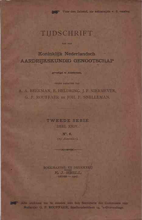 | Titel: | Tijdschrift van het Koninklijk Nederlandsch Aardrijkskundig Genootschap: Tweede serie deel XXIV no. 6, november |
