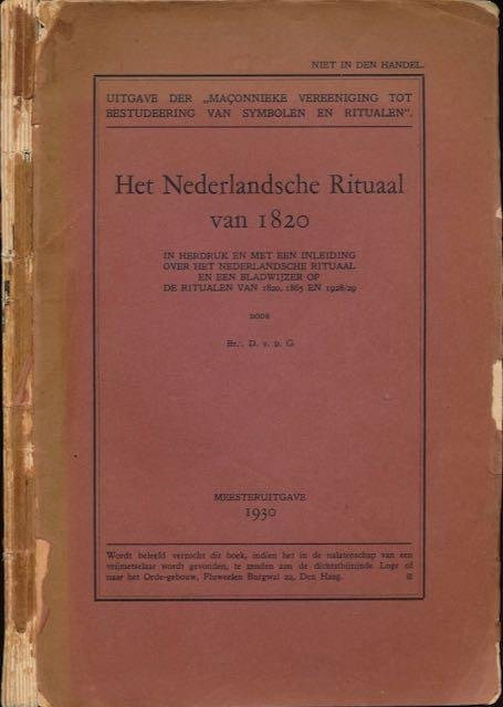 Br. D. v.d.G - Het Nederlandsceh Rituaal van 1820 in herdruk en