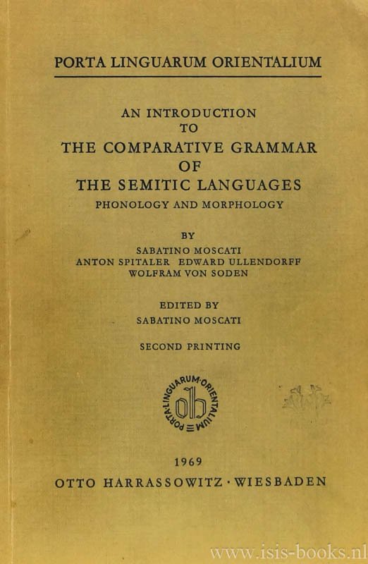 MOSCATI, S., SPITALER, A., ULLENDORFF, E., SODEN, W. VON - An introduction to the comparative grammar of the semitic languages. Phonology and morphology,
