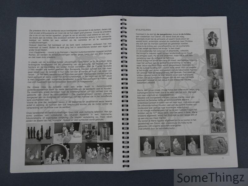 | Meer info: | Interessante folkloristische privé-uitgave van Jan Holvoet over de geschiedenis, tradities en gebruiken rond het Kerstfeest (kerstboom, kerststal, kerstfiguren, stalfiguren, driekoningen, sterzingen, beschermheiligen, kerstliederen kerstkaars, kerstbal, nieuwjaarsbrief, adventskrans, enz.). |