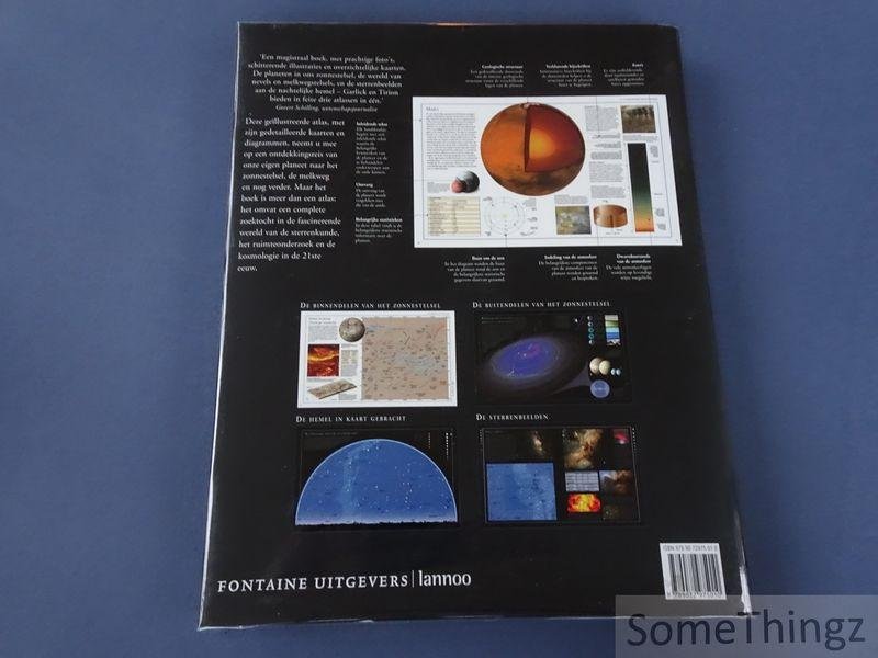Deze geïllustreerde atlas, met zijn gedetailleerde kaarten en diagrammen, neemt u mee op een ontdekkingsreis van onze eigen planeet naar het zonnestelsel, de melkweg en nog verder. Maar het boek is meer dan een atlas: het omvat een complete zoektocht in de fascinerende wereld van de sterrenkunde, het ruimteonderzoek en de kosmologie in de 21ste eeuw.