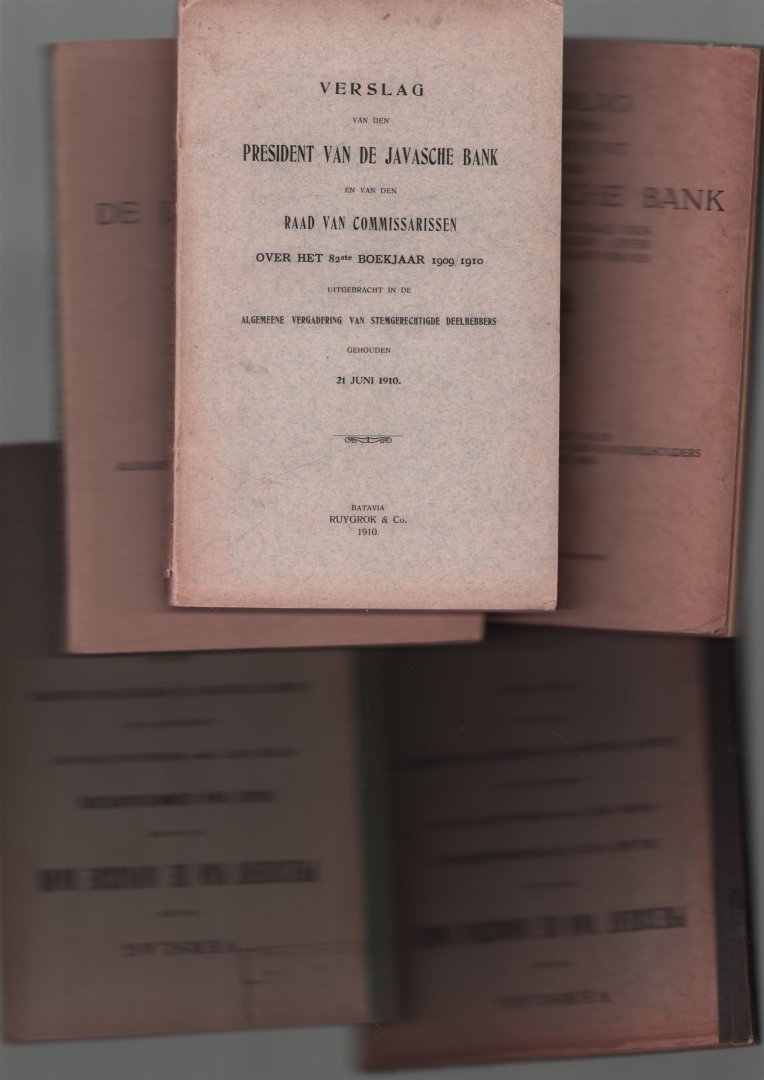 | Titel: | 5 jaren ----- Verslag van den president der Javasche Bank en van den raad der commissarissen uitgebracht in de algemeene vergadering van stemgerechtigde deelhebbers. |
