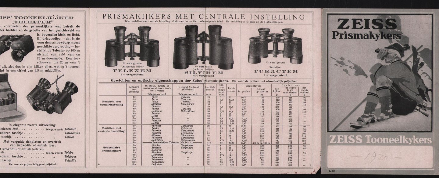 | Bijzonderheden: | 1920, Goed, 4 slags folder (44x16 Cm) + prijzen Zeiss Prismakijkers 1920 |