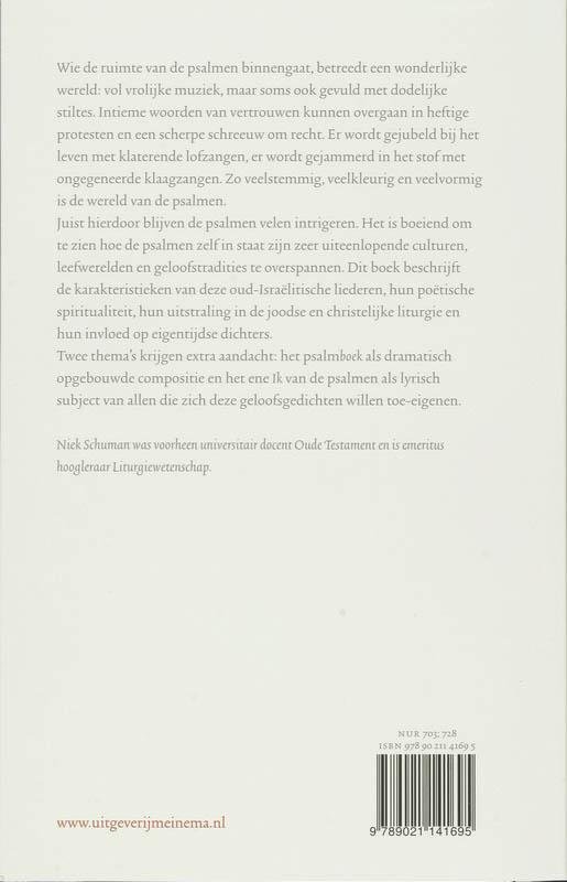 Drama van crisis en hoop De psalmen: gedicht, gebundeld en gebeden Wie de ruimte van de psalmen binnengaat, betreedt een wonderlijke wereld: vol vrolijke muziek, maar soms ook gevuld met dodelijke stiltes. Intieme woorden van vertrouwen kunnen overgaan in heftige protesten en een scherpe schreeuw om recht. Er wordt gejubeld bij het leven met klaterende lofzangen, er wordt gejammerd in het stof met ongegeneerde klaagzangen. Zo veelstemmig, veel-kleurig en veelvormig is de wereld van de psalmen.Juist hierdoor blijven zij velen intrigeren. Het is boeiend om te zien hoe de psalmen zelf in staat zijn zeer uiteenlopende culturen, leef-werelden en geloofstradities te overspannen. Dit boek beschrijft de karakteristieken van deze oud-Israëlitische liederen, hun poëtische spiritualiteit, hun uitstraling in de joodse en christelijke liturgie en hun invloed op eigentijdse dichters.Twee thema’s krijgen extra aandacht: het psalmboek als dramatisch opgebouwde compositie en het ene Ik van de psalmen als lyrisch subject van allen die zich deze geloofsgedichten willen toeëigenen.Niek Schuman was voorheen universitair docent Oude Testament en is emeritus hoogleraar Liturgiewetenschap.Toegankelijk, rijk en spiritueel boek over de inhoud en de invloed van het boek der psalmen.