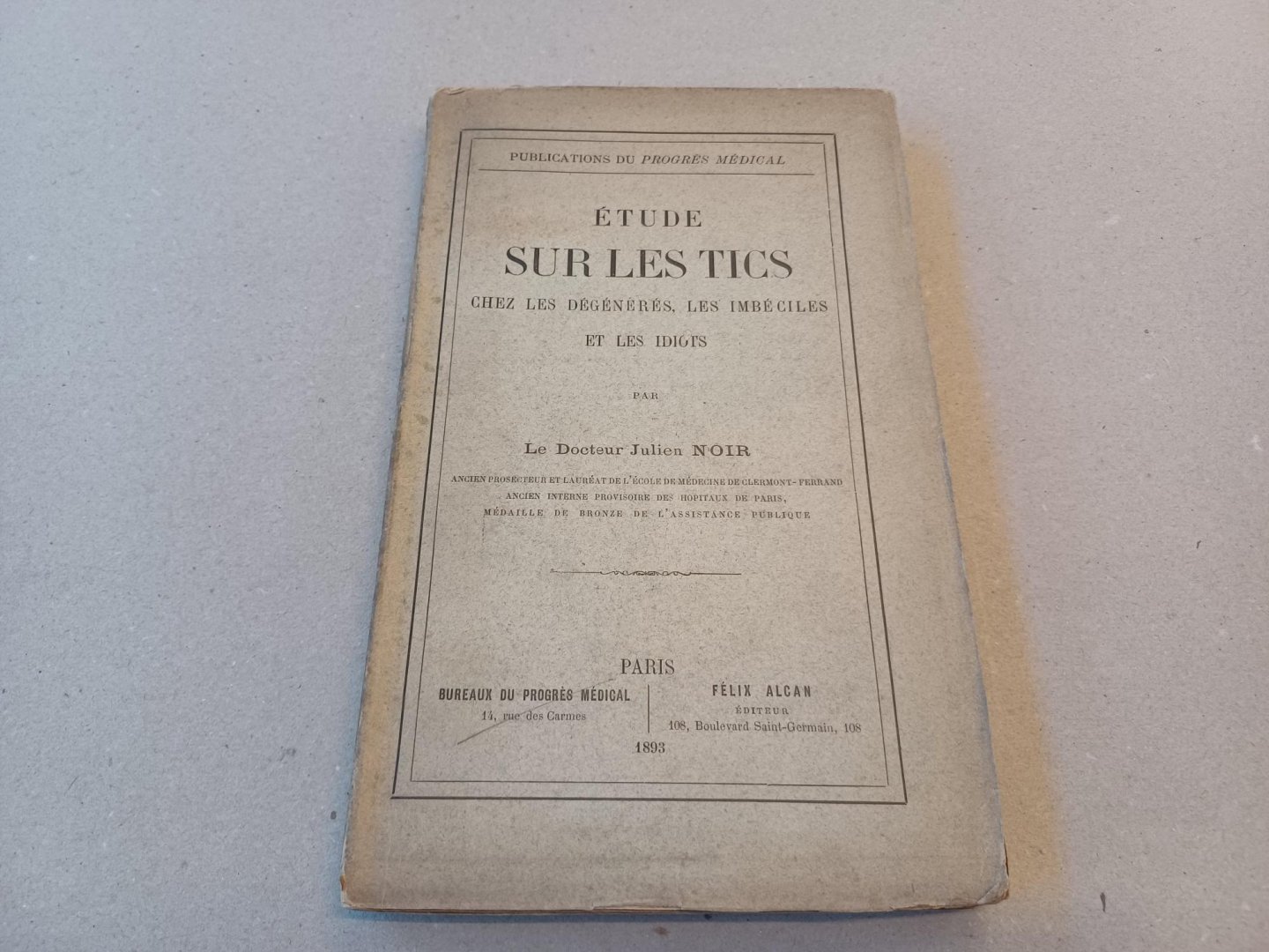 | Uitgever: | Bureaux du Progres Medical/Felix Alcan, Paris, 1893 |