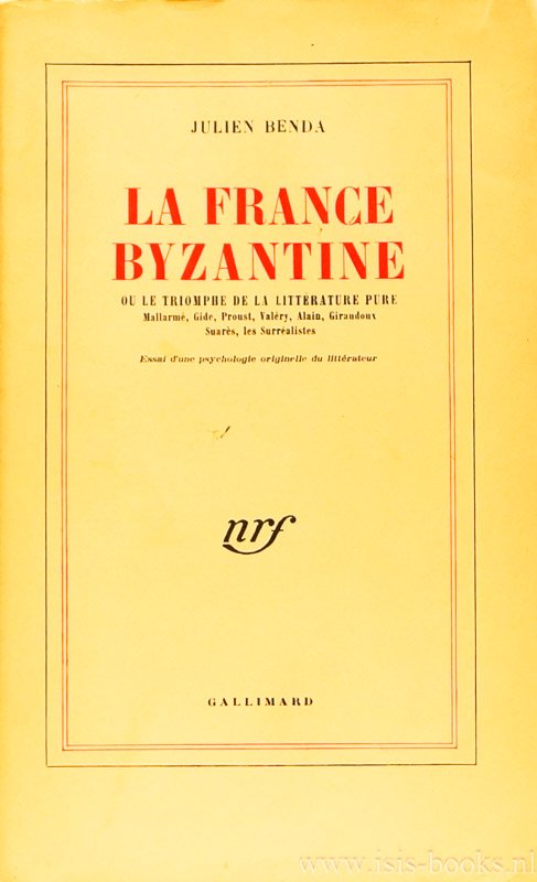 | Titel: | La France byzantine ou le triomphe de la littérature pure. Mallarmé, Gide, Proust, Valéry, Alain, Girandoux, Suarès, les surréalistes. Essay d'une psychologie originelle du littérateur. |