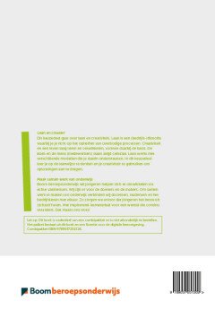 Inhoud combipakketBij het bestellen van dit combipakket ontvang je:de papieren uitgave van het keuzedeelde licentie voor de digitale leeromgeving die toegang geeft tot de content en multimedia van het keuzedeel.Lean en CreatiefLean en creatief, wat is dat? Lean is een (bedrijfs-)filosofie die met succes in het bedrijfsleven wordt toegepast. Daarbij richt je je op het opheffen van overbodige processen. De klant en de mens (medewerkers) staan altijd centraal. Creativiteit en een leven lang leren en ontwikkelen, vormen daarbij de basis. In dit keuzedeel leer je op de lean wijze te denken en je creativiteit te gebruiken om oplossingen aan te dragen. Lean werkt met verschillende modellen die je daarin ondersteunen. Maar vooral inzicht, creativiteit en inventiviteit zijn belangrijk. KerntaakD1-K1: Lean en creatief innoveren WerkprocessenD1-K1-W1: Ontwikkelt een inventieve mindsetD1-K1-W2: Verbetert lean en creatief (bedrijfs)processenCode keuzedeelK0512 ExamenmateriaalBij dit keuzedeel is ook examenmateriaal beschikbaar via de docent. Meer informatie?Meer informatie vanuit SBB over dit keuzedeel vindt u op www.s-bb.nl.