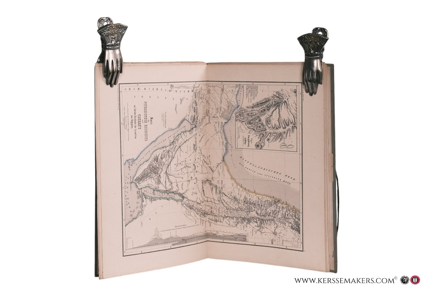 fastening ribbon dam.). Loosely inserted: iv pp. (probably 2 pp. missing) & 7 double-page maps of which 6 with handcoloured borders. - 27x36 cm. - maps are in nice condition. WorldCat mensions only 2 editions ¶ I. Petraeischen Halbinsel und Canaan's zur Zeit der Rückkehr der Israeliten aus Aegypten. II. Palaestina zur Zeit der Richter und der Könige. III. Karte von Assyrien, Babylonien und Persien. IV. Palaestina von der Rückkehr der Juden... V. Karte zur Geschichte des apostolischen Zeitalters... VI. Plan von Jerusalem. VII. Karte von Palaestina nach seinem heutigen Zustande.