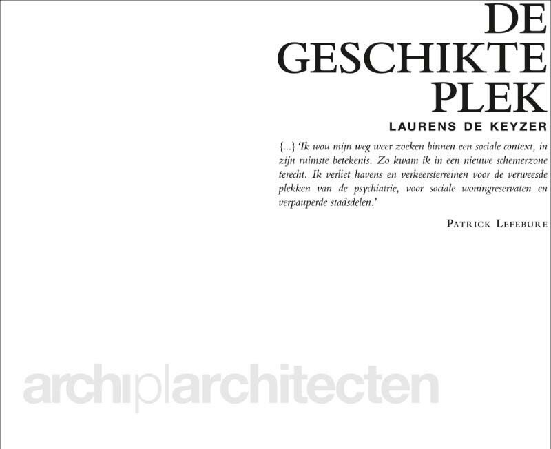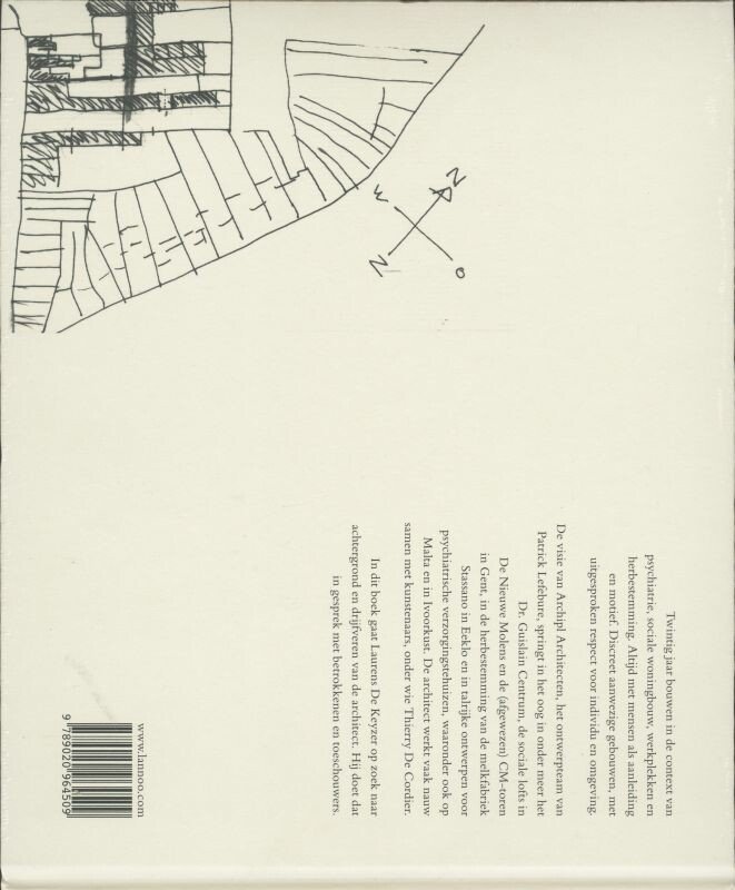 Monografie over het werk van Patrick Lefebure: twintig jaar bouw van psychiatrische instellingen, woningbouw en renovaties, steeds met de mens als middelpunt Lefebure werd bekend dankzij de renovaties van het dr. Guislain-instituut. Hij is internationaal erkend als specialist inzake de architectuur voor psychiatrische patië nten. Hij werkte samen met onder meer Thierry De Cordier. Met de verhalen achter de verschillende projecten en realisaties, opgetekend door Laurens De Keyzer