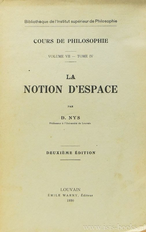 NYS, D. - La notion d'espace.