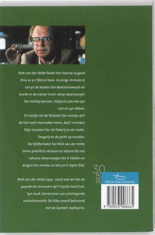 De fjildferhalen fan Rink van der Velde binne prachtich skreaun en steane fol mei sekuere observaasjes fan it hâlden en dragen fan minske en bist yn it iepen fjild. Rink van der Velde (1932-2001) wie ien fan de populêrste skriuwers dy¿t Fryslân kend hat. Syn wurk, benammen syn ynkringende oarlochsnovelle De fûke, waard bekroand mei de Gysbert Japikspriis.