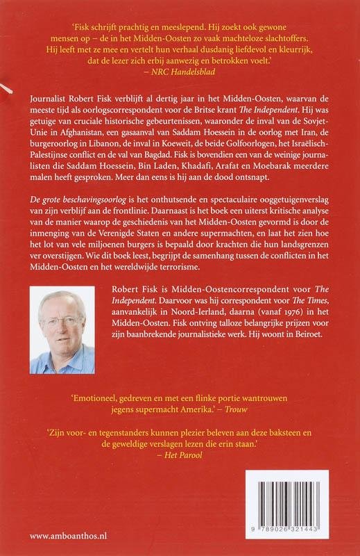 Journalist Robert Fisk verblijft al dertig jaar in het Midden-Oosten, waarvan de meeste tijd als oorlogscorrespondent voor de Britse krant The Independent. Hij was getuige van cruciale historische momenten, waaronder de inval van de Sovjet-Unie in Afghanistan, een gasaanval van Saddam Hoessein in de oorlog met Iran, de burgeroorlog in Libanon, de inval in Koeweit, de beide Golfoorlogen, het Isra?lisch-Palestijnse conflict en de val van Bagdad. Fisk is bovendien een van de weinige journalisten die Saddam Hoessein, Osama Bin Laden, Khadafi, Arafat en Moebarak meerdere malen heeft gesproken. Meer dan eens is hij aan de dood ontsnapt.