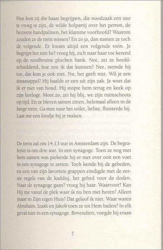Niets was minder waar.' Hun affaire begint in een boekwinkel in New York. De jonge joodse vrouw Kitty en de oude schrijver Joseph, een overlevende van de holocaust, beleven een hartstochtelijke romance. In de nachtelijke uren vertelt Joseph zijn verhaal. De geschiedenis van een overlever, die voor de nazi's van Wenen naar Amsterdam vlucht, maar wanneer Nederland bezet wordt alsnog moet onderduiken. Hij wordt gered door de prostituee Marijke. Joseph is sinds de oorlog altijd op de vlucht voor het verleden. Hij kan geen normale relatie onderhouden. Maar tegen Kitty begint hij te praten. En zij kan niet anders dan luisteren en de woorden in zich opnemen die Joseph spreekt. Het relaas van een man wiens hart versteend is. Een oorlogsgeschiedenis is een indrukwekkend verhaal over overleven en doorleven, over de last van het verleden en de gevolgen van de holocaust. |